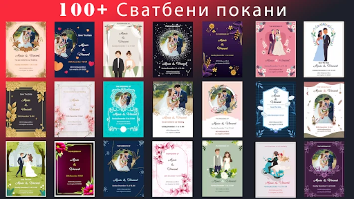 Създайте безплатни сватбени покани и картички за годишнина с над 100 красиви шаблона. Приложението предлага лесен начин да персонализирате своите дизайни за незабравими празненства. Изцяло безплатно и удобно за потребителя.