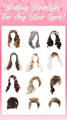 "Сватбени прически на снимка" е фоторедактор за булки. Добавете невероятни сватбени прически, грим, бижута и корони към снимките си лесно и бързо. Създайте перфектния си булчински вид с красива коса и аксесоари абсолютно БЕЗПЛАТНО! Открийте разнообразие от стикери и идеи за вашата сватбена визия.