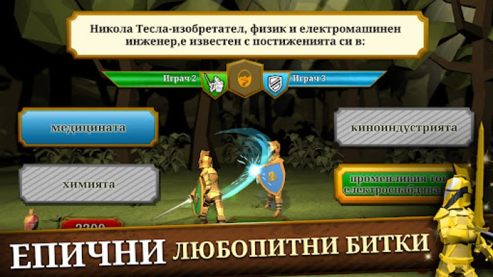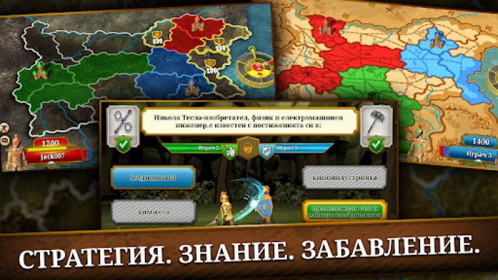 Впуснете се в едно изцяло ново гейминг преживяване, което надхвърля традиционните игри с любопитни факти. Triviador ви кани в уникален свят, където стратегическо мислене и енциклопедични знания се преплитат. Не просто отговаряйте на въпроси – завладявайте територии, обсаждайте замъци и доказвайте превъзходството си на бойното поле на ума. Всяко правилно решение в Triviador ви приближава към господството, като същевременно изпитва остротата на ума ви и тактическите ви умения.