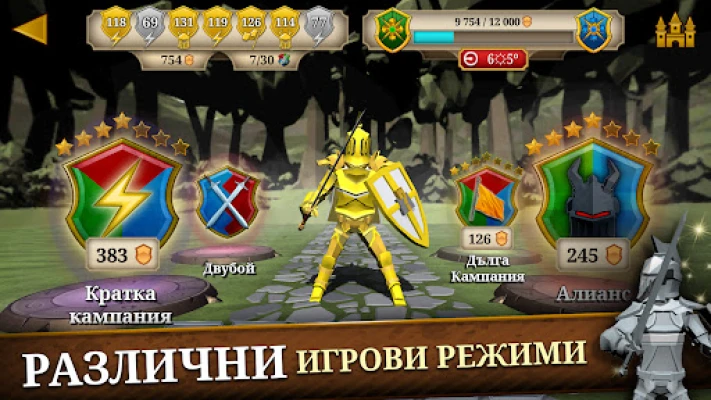Приемете предизвикателството на седмичните лиги и си проправете път нагоре, стремейки се към титлата на най-добър рицар за целия сезон. Тук знанието е сила, а стратегията е ключът към безсмъртието. Надхитрете опонентите си с превъзходни отговори и безупречни ходове, за да вкусите усещането да бъдеш истинска легенда. Станете част от процъфтяващата общност на Triviador: присъединете се към съществуващ клан или създайте свой собствен, за да постигате заедно върхове и да доминирате в класациите.