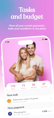 За да поддържаме вълнението живо, нашето приложение предлага красив уиджет с обратно броене на дните до вашата сватба, който ще е винаги пред очите ви. С него всеки ден ще ви доближава до мечтания момент, изпълвайки ви с радостна очакване. Ние разбираме, че вашата сватба е събитие, което е изключително важно за вас, вашето семейство и приятели. Затова създадохме този изключителен плановик – за да ви помогнем да организирате всичко до съвършенство и да се насладите на всеки миг, знаейки, че сте подготвили най-доброто. Осигурете си спокойствие и съвършенство във всеки детайл.