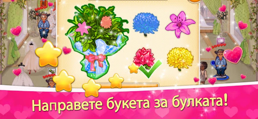Предстоят ви 90 предизвикателни нива в жанра управление на времето, които ще тестват вашите умения и бързина под напрежението на предсватбената суматоха. Потопете се в разнообразни мини-игри: от изработване на перфектната сватбена торта до приготвяне на екзотично суши и смесване на авторски коктейли, достойни за най-изисканите събития. Всичко това е обвито в завладяваща история, изпълнена с неочаквани обрати, цветни илюстрации и незабравими герои, които ще оживят всяка една сватба, предлагайки ви едно наистина неповторимо изживяване.